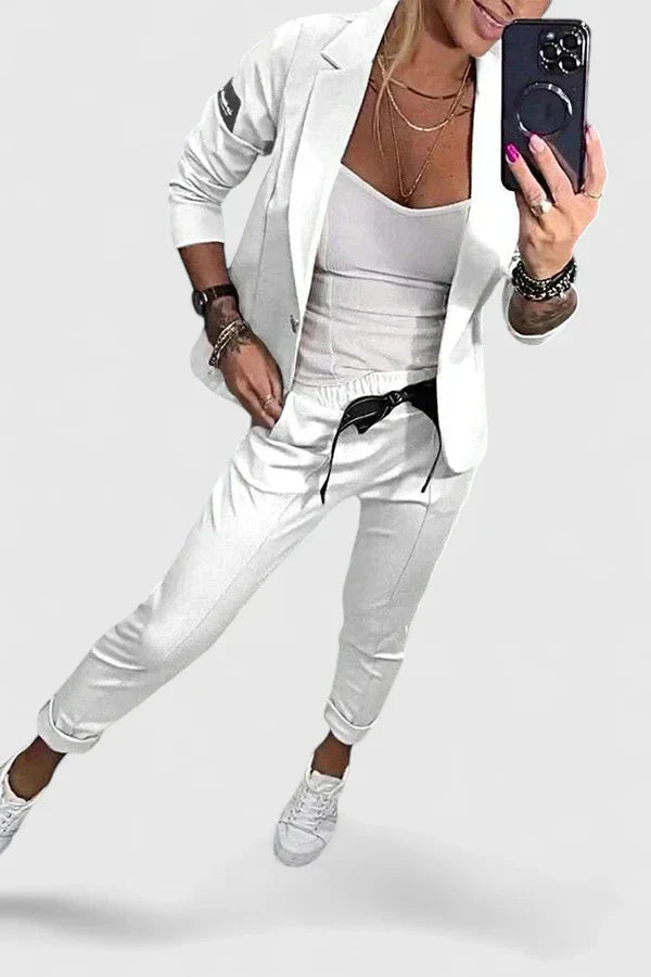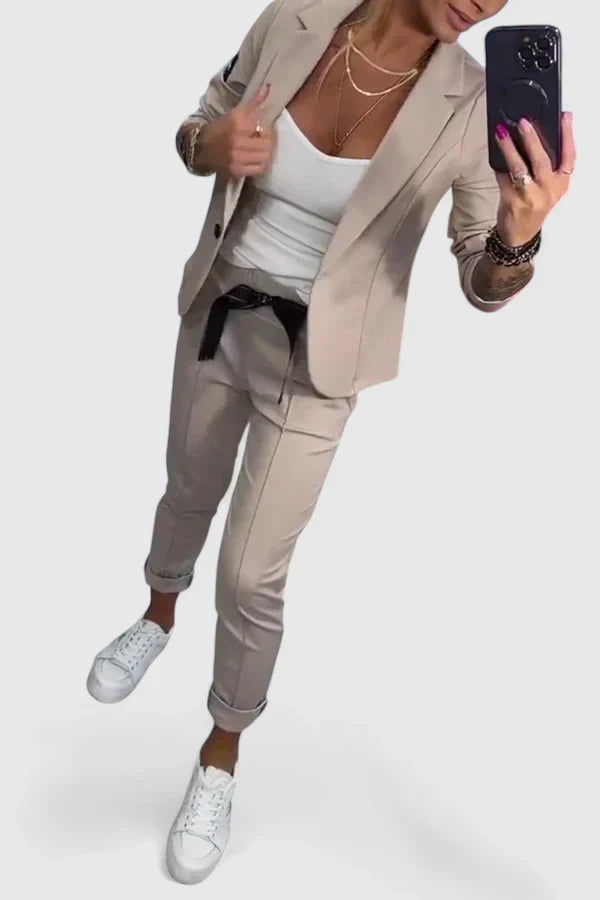 • ✔ Coordinated 2-piece set: Blazer + Jogger Pants
